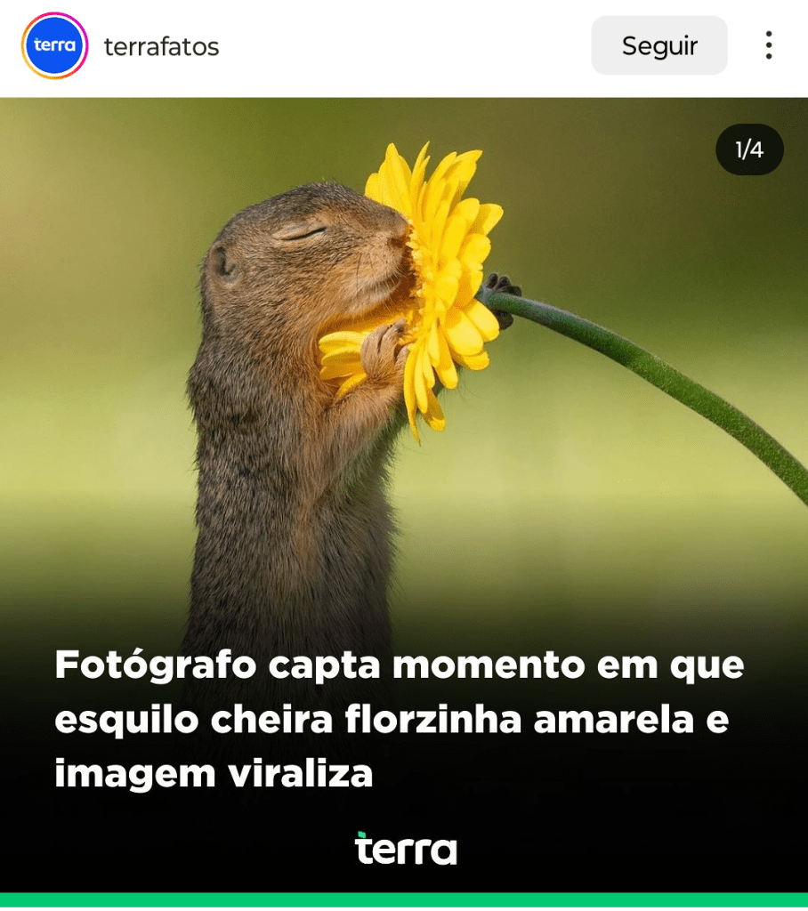 Esquilo cheira flor. Criação perfeita de nosso Deus