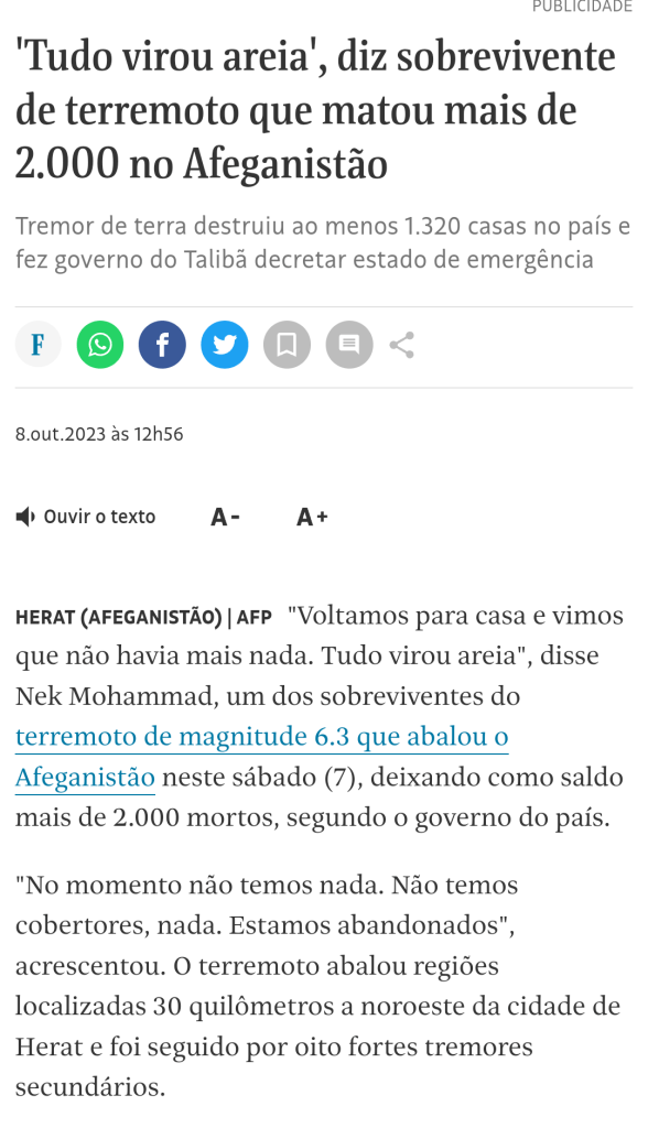 Terremoto no sábado Mata 2 mil no Afeganistão