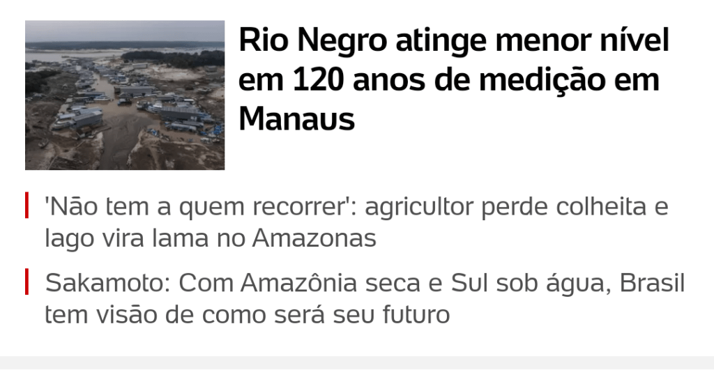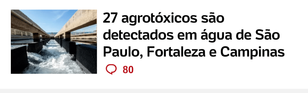 Amazônia maior seca de 120 anos. Água de torneira contaminada com 27 agrotóxicos