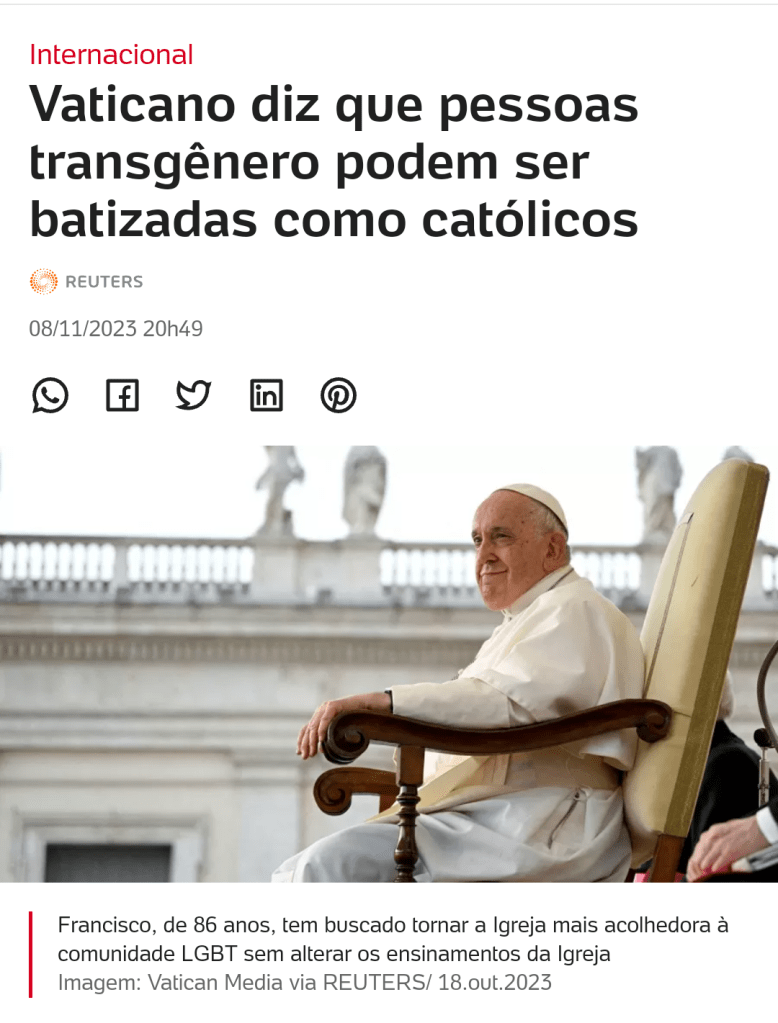A notícia nada fala de mudança de vida, arrependimento ou coisa parecida. Dá a entender que todos os pecadores são bem vindos para continuar sendo pecadores, ou seja, a normalização do pecado.
