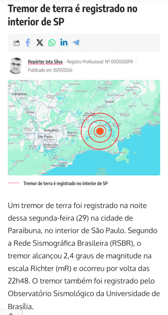 Tremor de terra registrado no interior de SP