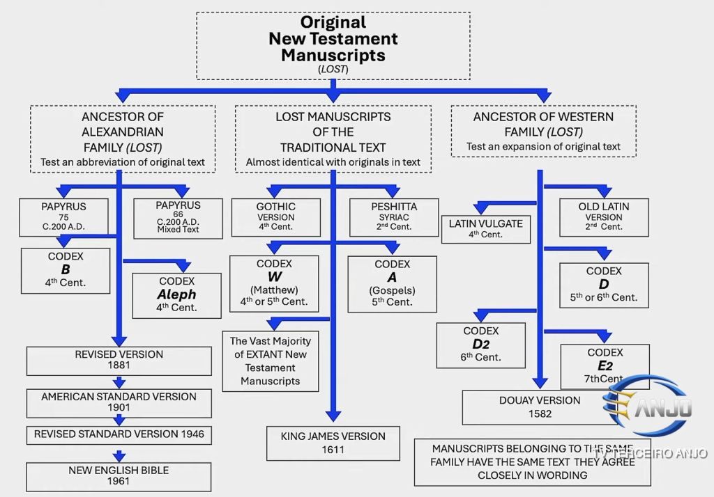 A linha da esquerda e da direita são os manuscritos modificados pelo diabo e o do centro é verdadeiro e legítimo e preservado por Deus. Fonte https://youtu.be/FbAmMN2cdF8?si=JAueleBsNQOu_OyX