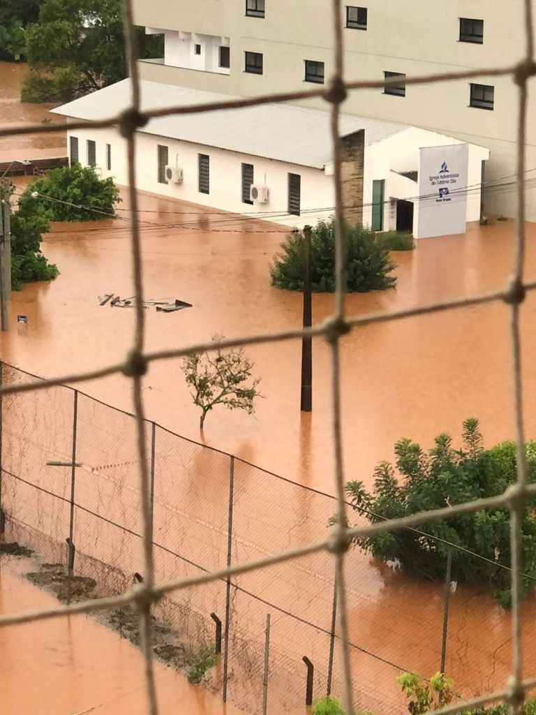 Igreja adventista de Encantado inundada