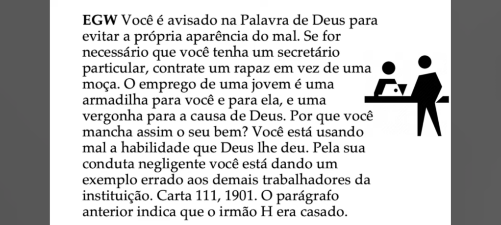 Ellen White: pastores não devem ter assistente mulher (só se for a esposa)