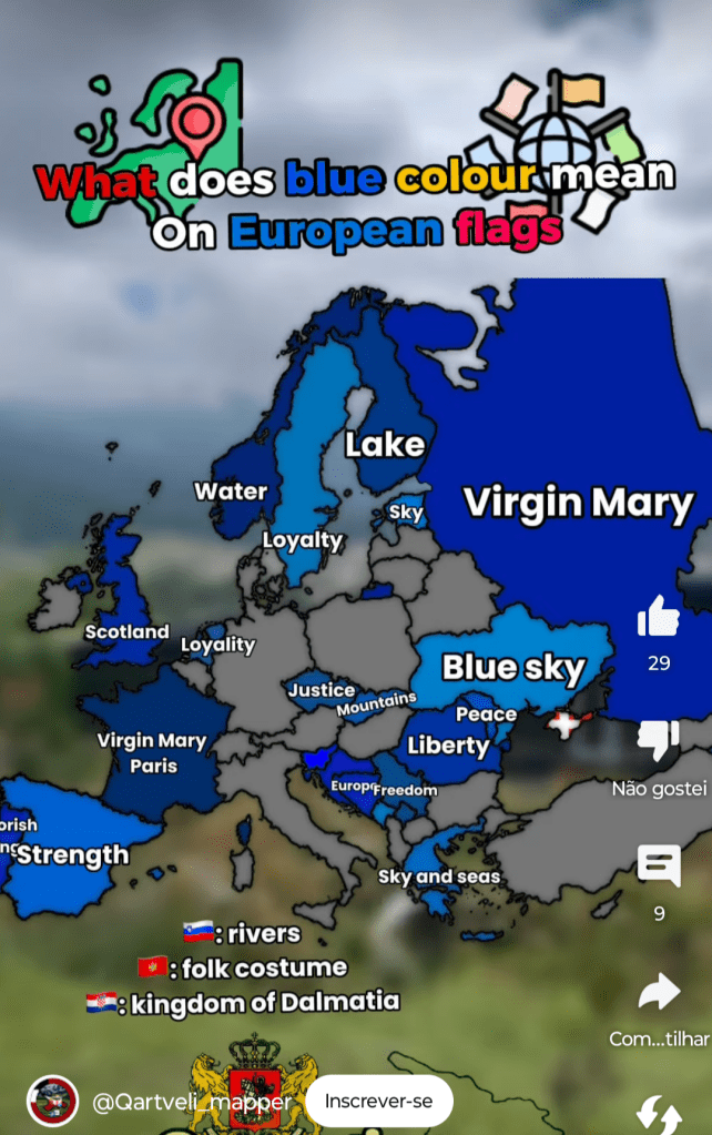 Países europeus que a cor azul da bandeira significa virgem Maria