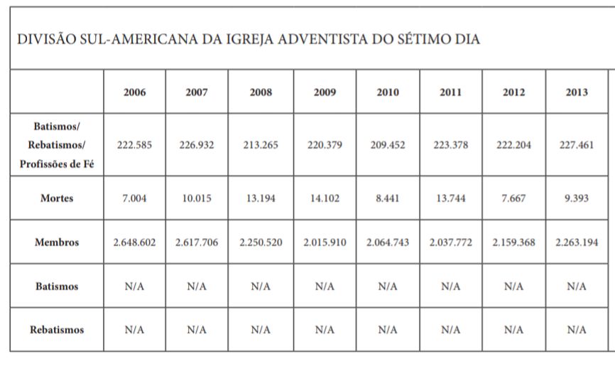 Em 13 anos a divisão sul americana perdeu membros. Era 2 milhões e 648 mil membros em 2006 e em 2019 passou para 2 milhoes e 546 mil membros.