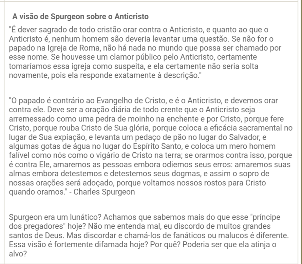 Charles Spurgeon sobre o anticristo papal