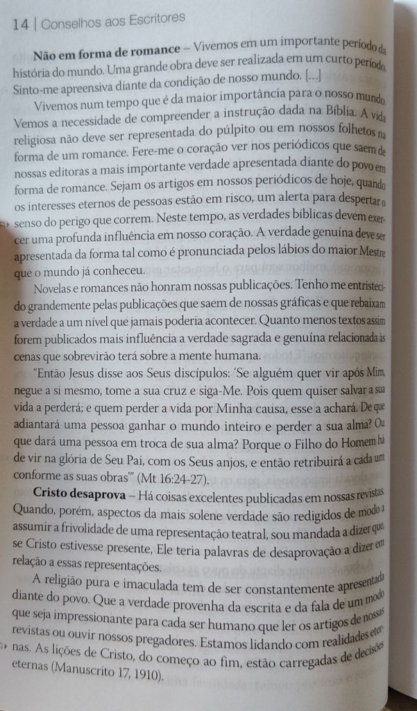 Ellen White: não publicar romances cristãos