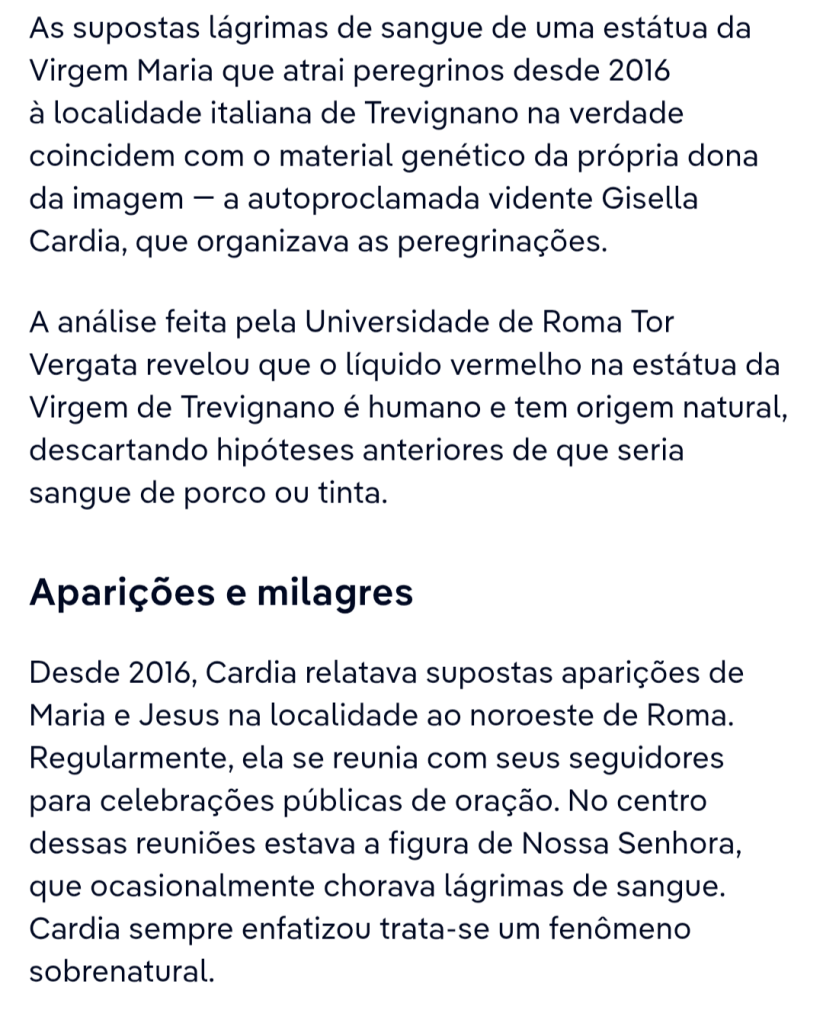Italiana colocava o próprio sangue dentro de estátua mariana