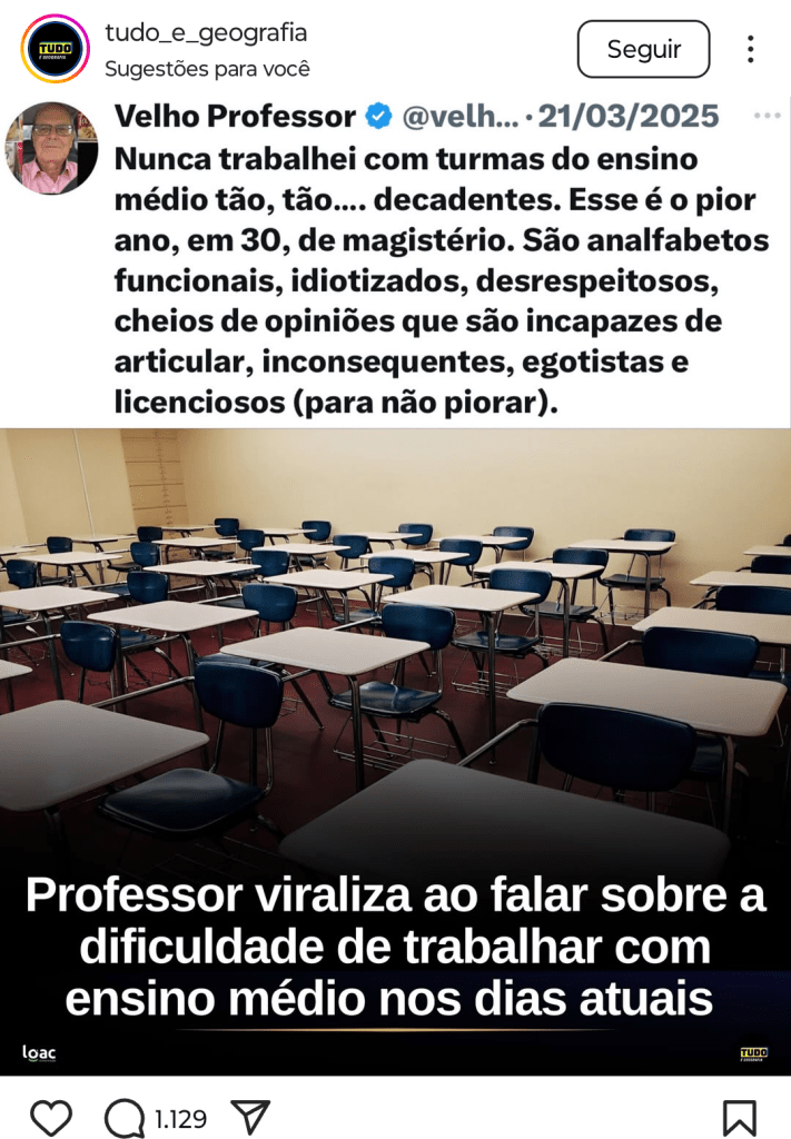 Professor diz que esta é a pior geração de estudantes