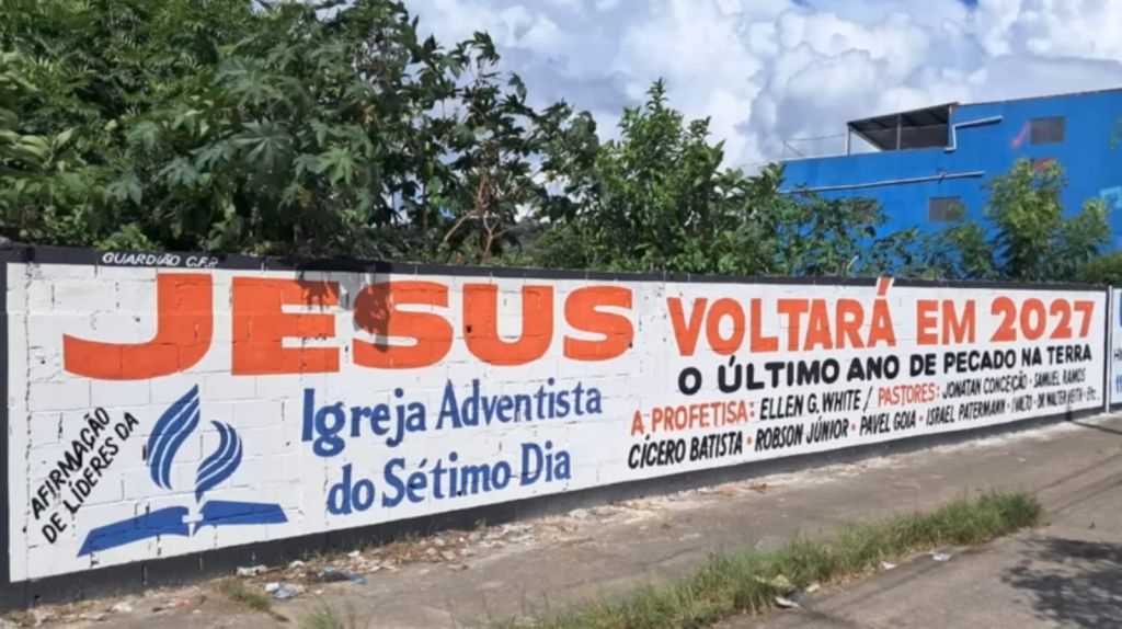 Um grupo de irmãos Adventistas apagou as escritas no muro deixando apenas “Jesus voltará”.