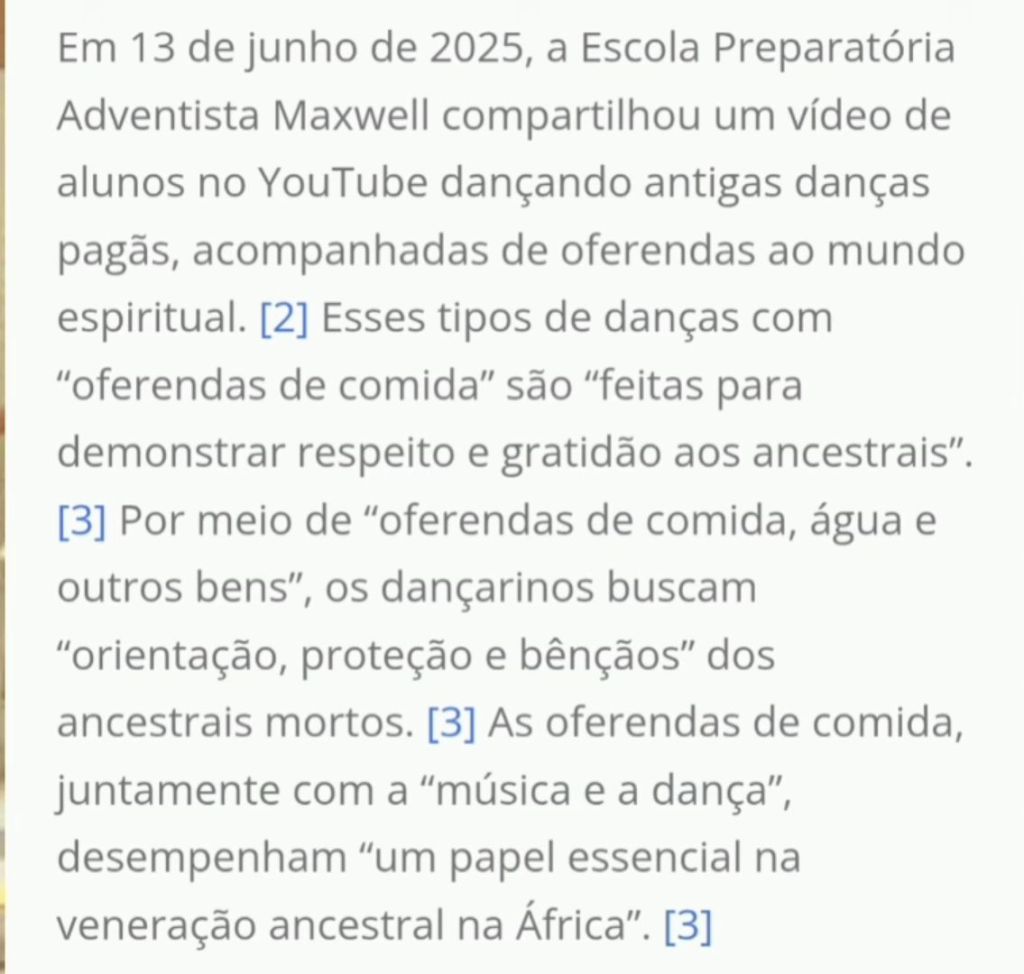 Dança pagã com oferenda aos mortos numa escola adventista