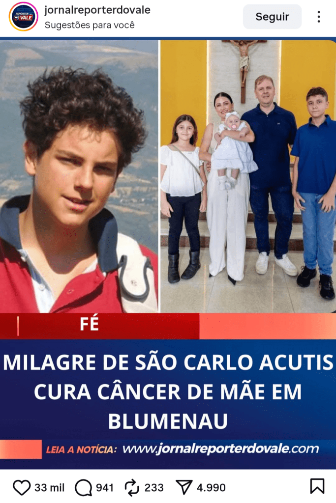 Fim dos tempos: santo de calça jeans cura câncer em santa Catarina
