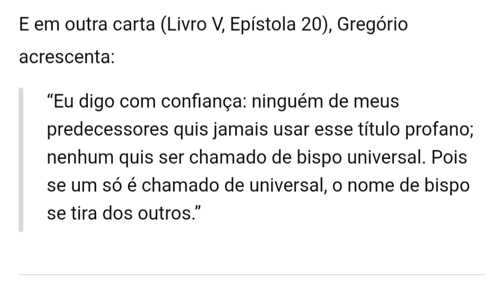 Como se vê os católicos atuais MENTEM de que o papa de Roma sempre teria sido o chefe de todos os bispos. Mas o papa Gregório rejeitava esse título sendo chefe apenas da sua região geográfica.