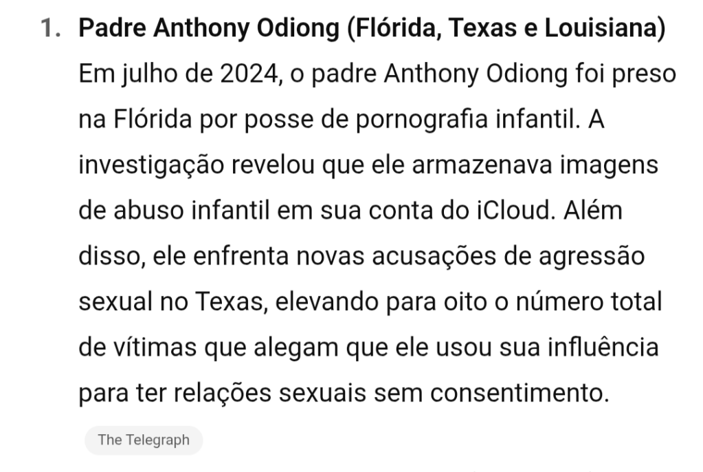 Mais de 10 padres dos EUA em posse de pornografia infantil (2024-2025)
