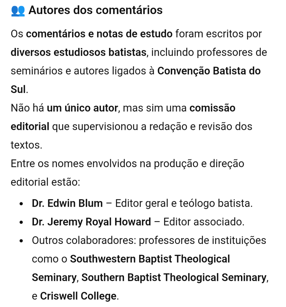 10– Bíblias que usam comentários de reformadores e pastores famosos. Temos a bíblia dos reformadores, Bíblia de Estudos de Matthew Henry. Bíblia de Spurgeon. A qualidade depende muito de quem organizou esses escritos pois são compilações de livros, sermões etc, e em muitos casos não foi pensado pelo autor original para ser nota de rodapé da Bíblia.