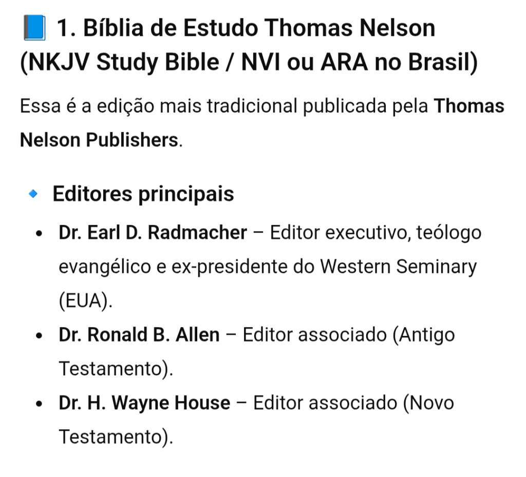 6– Bíblia de estudo NAA: também possui comentários reformados mas pode ser usada por arminianos porque é moderada e com estudos excelentes. Pode ser considerada interdenominacional. Considerada a melhor com estudo sistemático. Traz os estudos da ESV Study Bible.