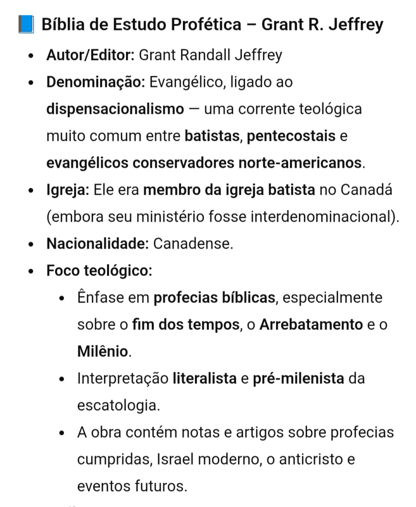 8- Bíblia Jeffrey -o autor era membro da igreja batista mas não segue a linha historicista do protestantismo histórico pois é futurista como descrito no item 6.