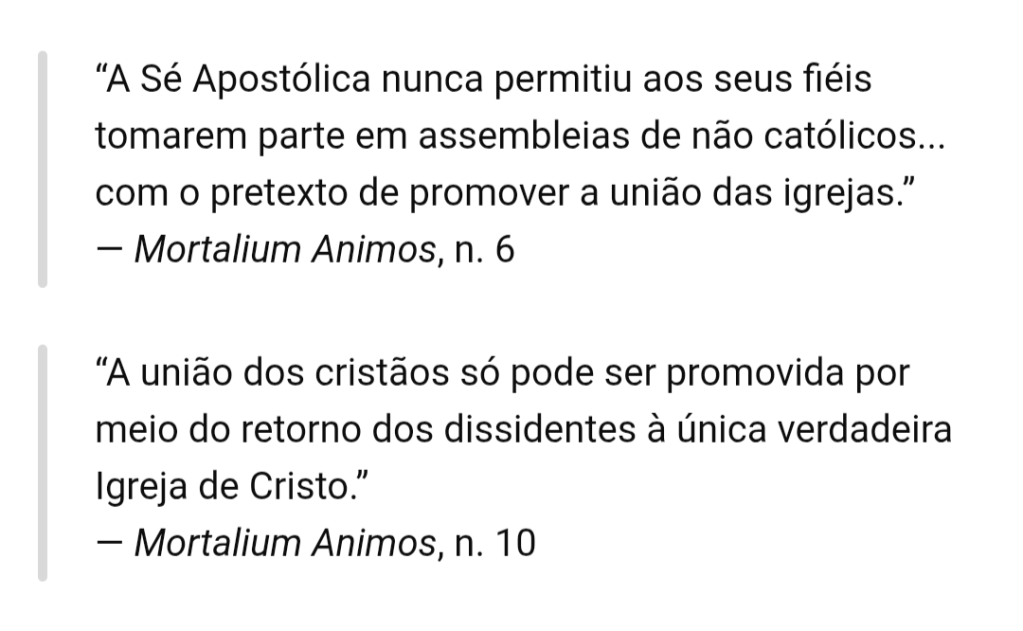 Contra o ecumenismo A favor do ecumenismo A Igreja católica se declara infalível mas seus documentos se contradizem a todo tempo. Quem está mentindo? Qual é o sagrado magistério?