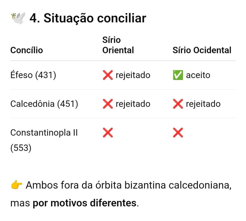 C. 512 Igreja Ortodoxa Síria. Inicialmente também não concordou com o concílio de Calcedônia mas disputas políticas com o Império forçaram a separação total em 512 quando o patriarca calcedoniano Flaviano II de Antioquia foi deposto. Severo de Antioquia (anti-calcedoniano) torna-se patriarca. Em 518 o imperador Justino I restaura o calcedonianismo. Severo é exilado. Passam a existir dois patriarcas rivais de Antioquia. um calcedoniano (ligado a Constantinopla). um siríaco-miafisita.