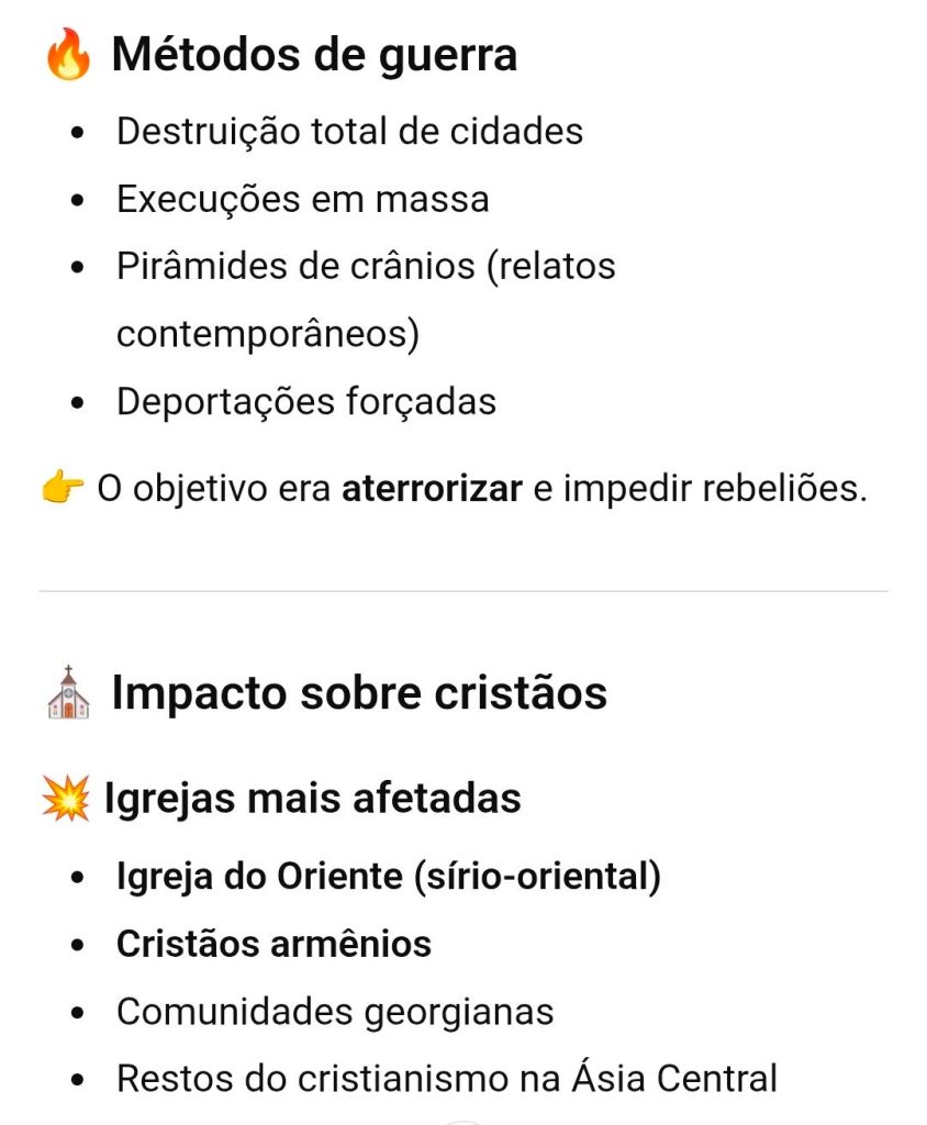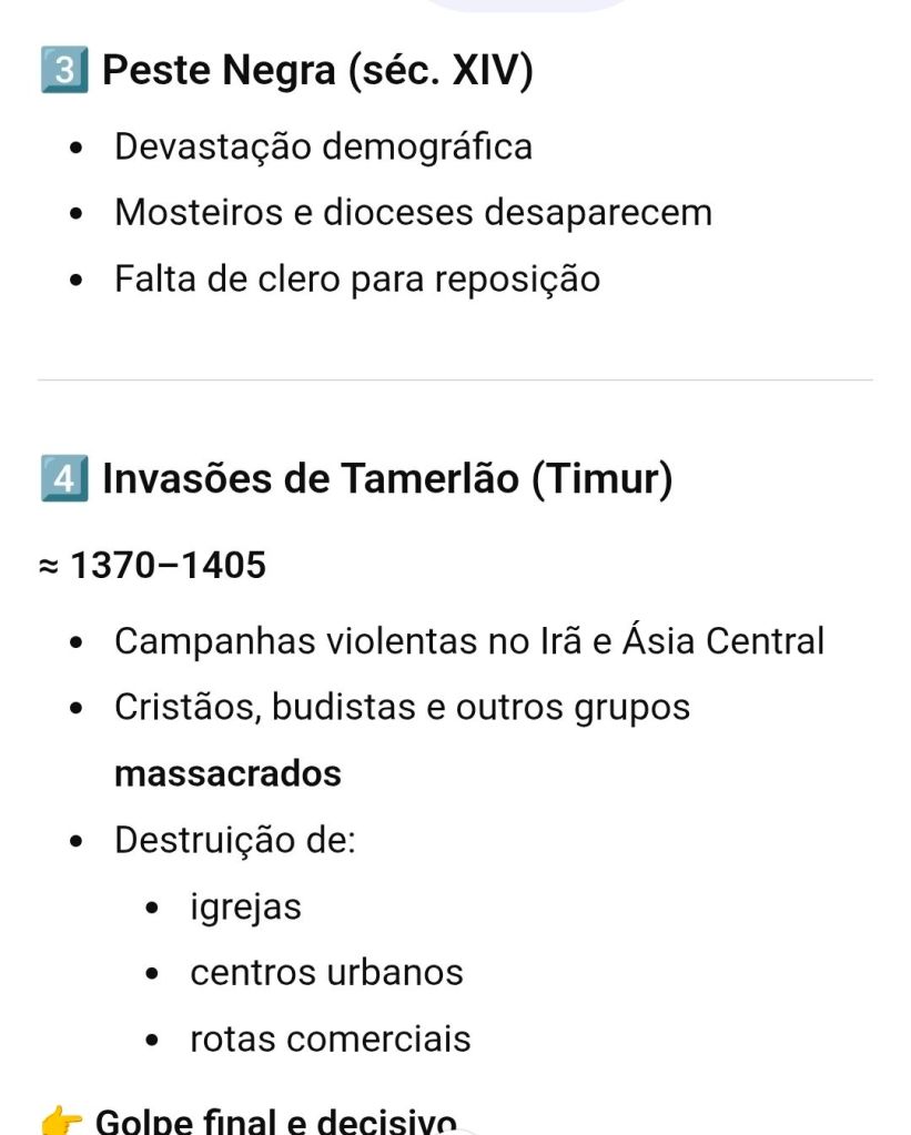 Impressionante que o cristianismo esteve presente na Ásia central mesmo em meio a expansão islâmica e do império dos mongóis. Comparação da destruiçao da Armênia, Bagdá e Delhi (índia)