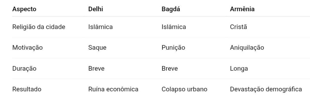 Comparação da destruiçao da Armênia, Bagdá e Delhi (índia)