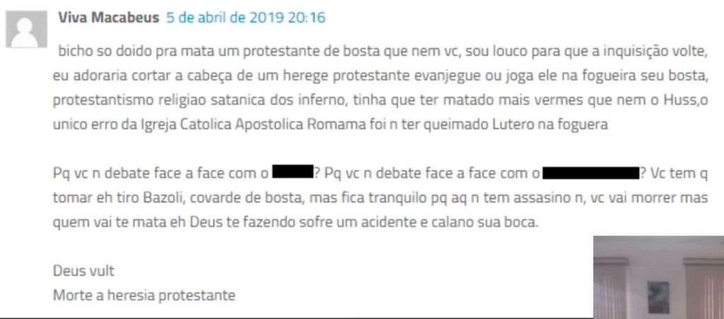 ATENÇÃO! Este é um vídeo longo, duro e penoso, mas certamente um dos MAIS IMPORTANTES e necessários da história do canal, onde exponho todos os apologistas do Talibã Católico que pedem pela nossa morte e que clamam pela volta da Inquisição e também todos os apologistas católicos que falam mansinho, parecem mais “moderados” mas dão todo o apoio aos radicais; faço um exposed completo com uma centena de prints de católicos me ameaçando de morte, defendendo a criminalização do protestantismo, o assassinato sumário de todos os protestantes, dizendo que protestantes são “uma raça sub-humana” que deveriam ser “incinerados assim como Hitler fez com os judeus” e muitas outras barbaridades do tipo, para ver se o “pastor” Anderson Silva vai continuar dizendo que o catolicismo é uma religião de paz e o protestantismo de guerra. Sei que vai ser difícil, mas tente assistir até o final para entender com o que realmente estamos lidando.