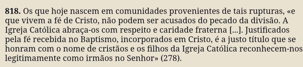 O artigo 818 do catecismo destrói a defesa da fé católica hoje na internet. Os católicos de internet declaram que os protestantes não são irmãos. Mas o catecismo diz o contrário.