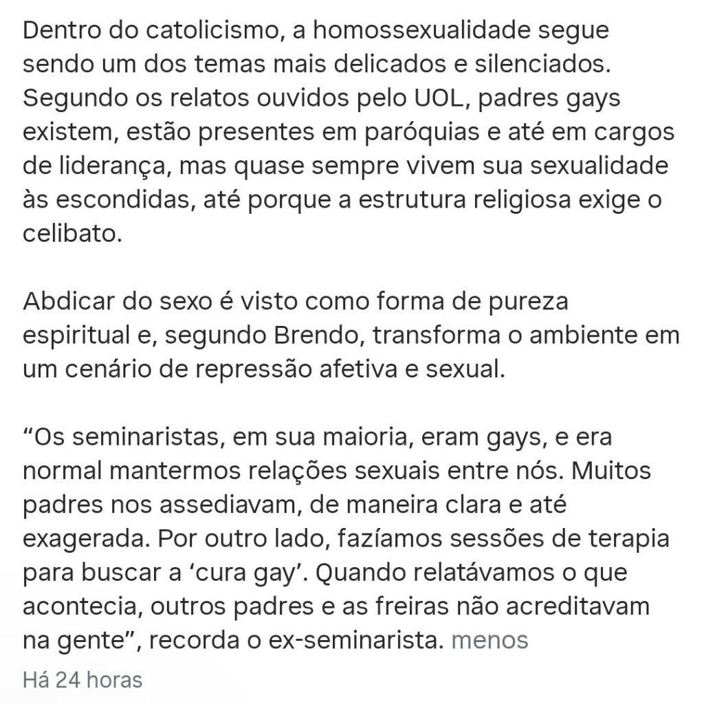 Sexo entre seminaristas corre solto