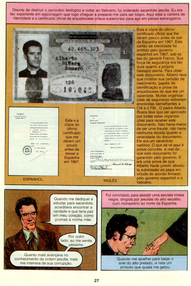 Eu conheci o Dr.Alberto Rivera,juntamente com sua esposa, pessoalmente em Pomona,CA.Na época eu estava como Bispo em LA e a pedido do bispo Macedo,entrevistei-o e com ele tive grande amizade.Fui eu,juntamente com o o então Pastor Haroldo quem traduzimos a maioria de seus livros,revistas e folhetos para o Português.Tivemos estreita amizade e lembro-me que ele me contou detalhadamente sobre a infiltração jesuíta nas Igrejas evangélicas,bem como o “modus operandi” dos mesmos jesuítas para levar a cabo sua “missão” dentro das Igrejas.É fato esta estratégia,testifico eu idônea e fidedignamente,pois sou testemunha ocular e auricular disso.Dr Alberto esteve no Brasil posteriormente em 1988 através da Universal,vindo na Catedral do Brás.Não me recordo dele haver mencionado especificamente algo sobre a IASD,mas que é fato verídico a infiltração nas Igrejas Evangélicas,testemunho e dou fé.Caso desejarem maiores informações,como Adventista do Sétimo Dia,estou a disposição para esclarecer,inclusive com riqueza de detalhes.No Amor de Cristo,